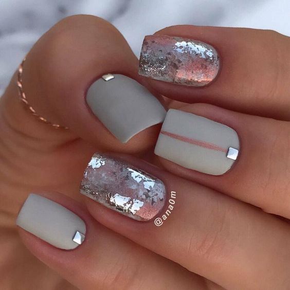 На замену мелкому глиттеру приходит металлический блеск. Вы можете получить металлический маникюр во множестве различных цветов и стилей: