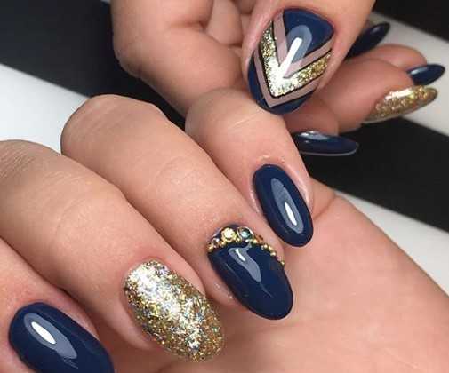 Золотые акценты в маникюре можно воплотить с помощью самого разного декора. Выбирайте, какой вариант вам больше по душе!