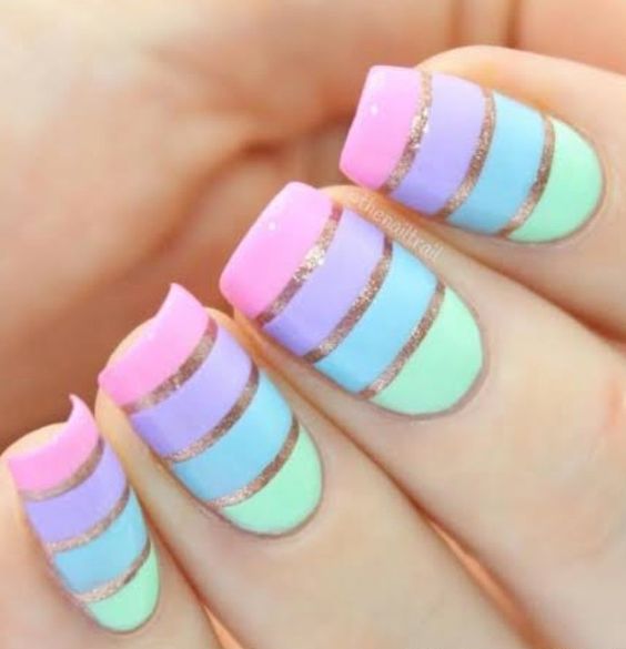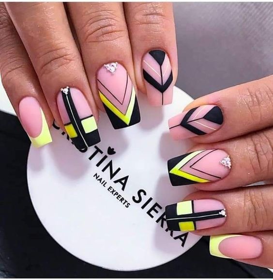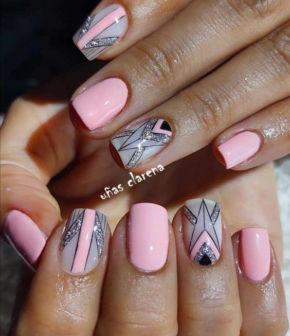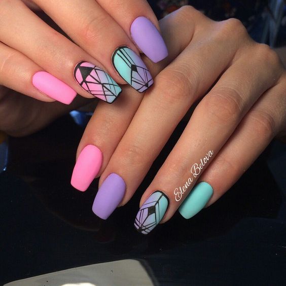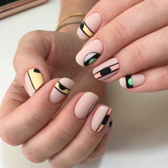 Популярная техника. Геометрия здесь предельно лаконична. Каждый элемент должен быть уникальным. Так рождаются яркие или нежные образы нейл-арта.