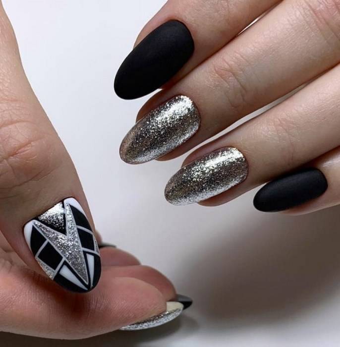 Этот универсальный цвет прекрасно сочетается с любыми другими оттенками, но самыми удачными вариантами считают серебристый и черный. Добавление в маникюр с золотом немного серебристого цвета, сделает его еще более праздничным и эффектным, а черный, наоборот, придаст немного скромности.