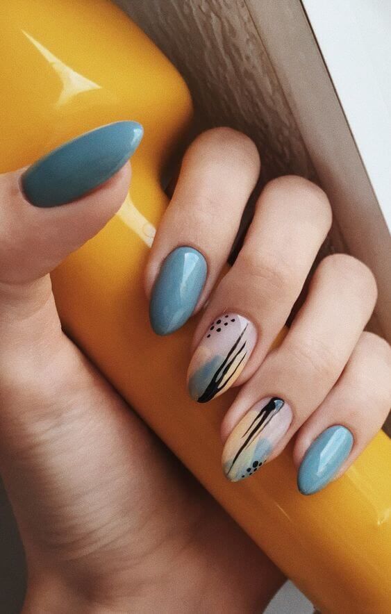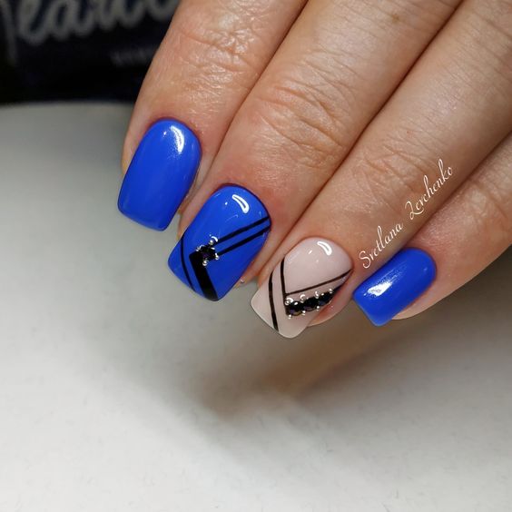 Синий цвет яркого цвета отлично подходит для пляжа, более холодные оттенки следует оставить до зимы и осени. Синий цвет лучше комбинировать с другими лаками. От этого ваш синий маникюр получится более изысканным и насыщенным.