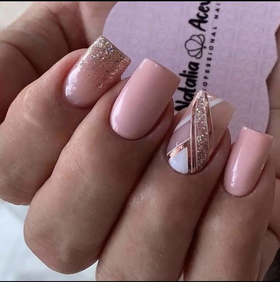- Нежное решение с применением акриловой пудры и акцентированием зоны кутикулы.