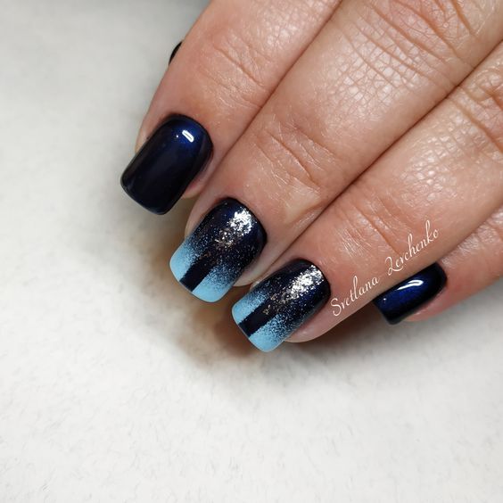Водный маникюр синего цвета на Новый год-2022 (с фото)