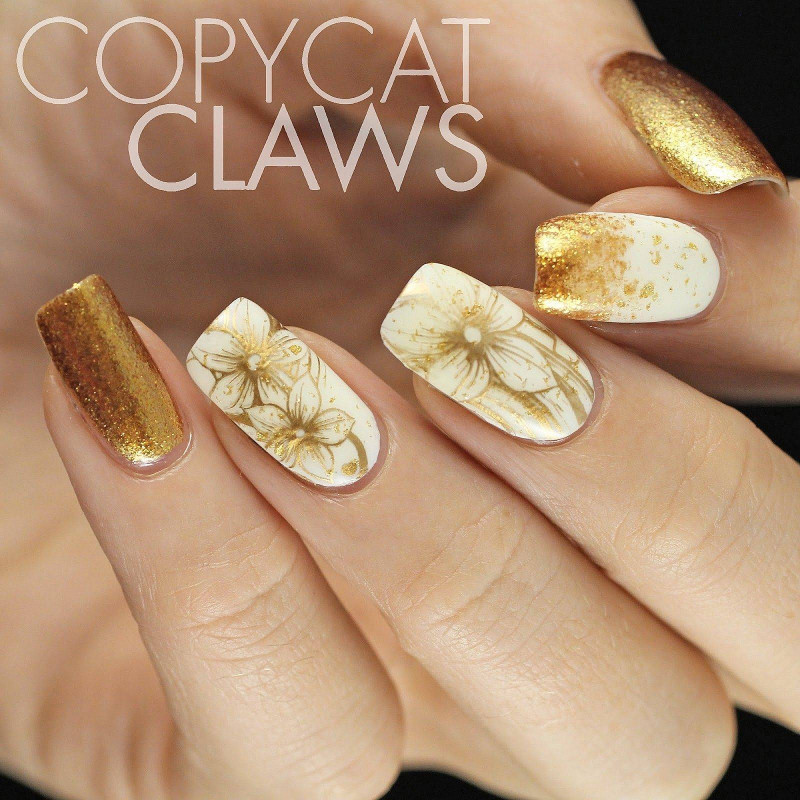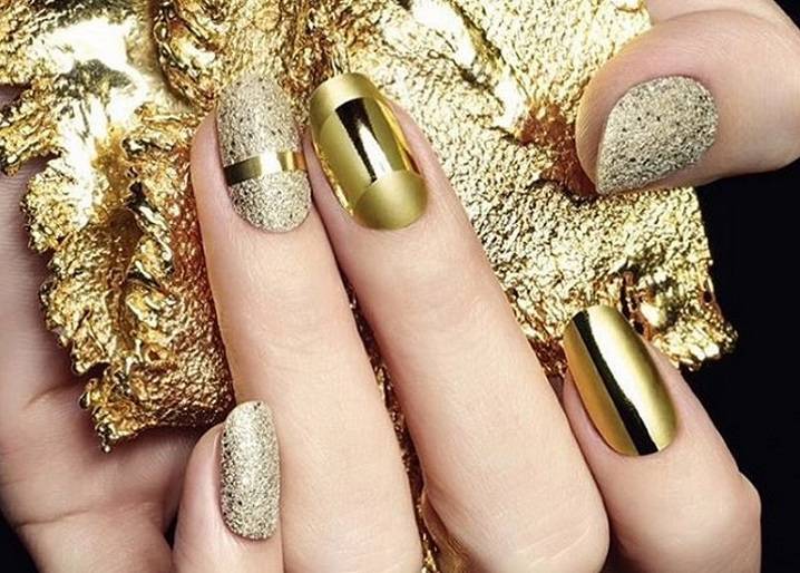 «Золотой» маникюр прекрасно сочетается с маленьким черным платьем, элегантным брючным костюмом, комбинезоном в нюдовых тонах, коротким пышным платьем. Маникюр с «золотым» декором может конкурировать с любым дорогим аксессуаром, придаст вашему образу статусность и подарит вам волнующую атмосферу праздника.