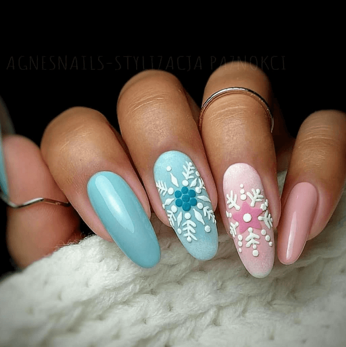Пастельные оттенки добавляют новогоднему маникюру нежности и спокойствия. Эти тона подойдут для тех, кто не хочет шумного праздника, предпочитая ему, тихий уютный вечер в кругу близких людей.