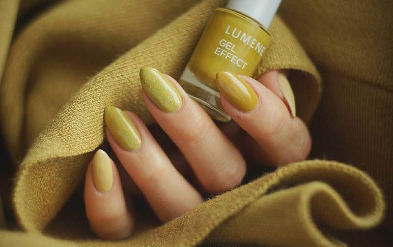 Хотя сам по себе классический цвет хаки вряд ли можно назвать привлекательным, на ногтях его можно превратить в настоящее чудо. Благо, в арсенале мастеров маникюра есть много подтонов, от лимонного до горчичного!