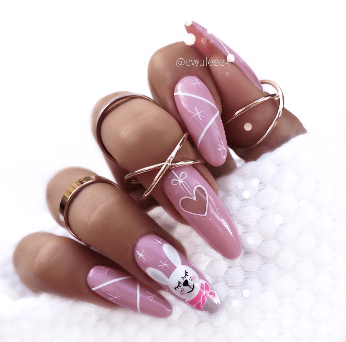 На миндальную форму ногтей с нежным дизайном