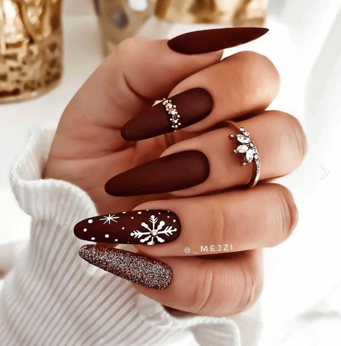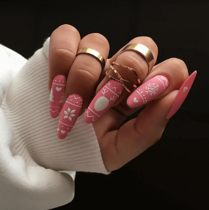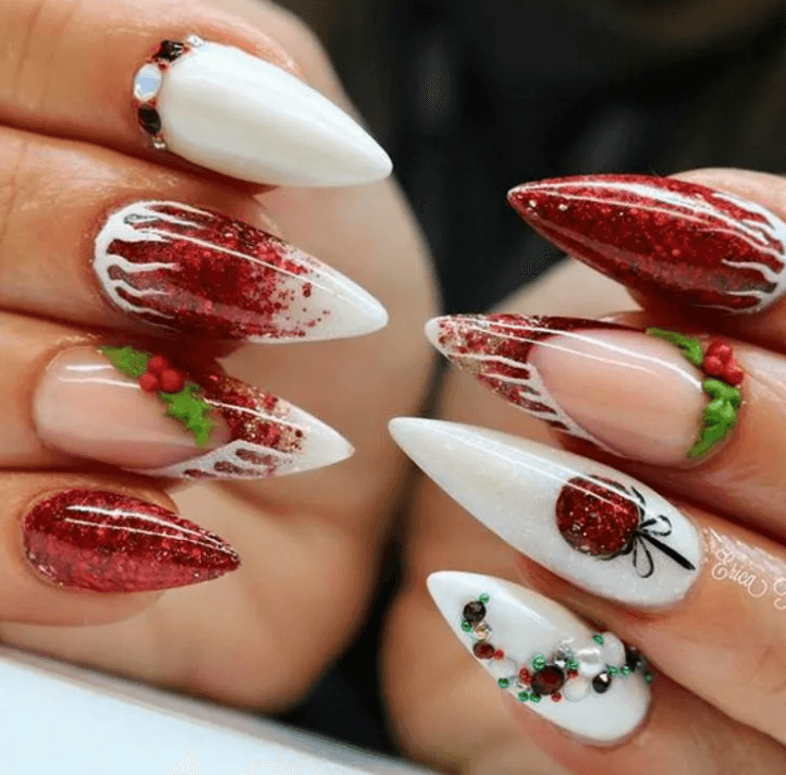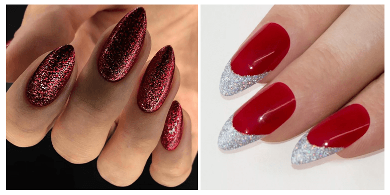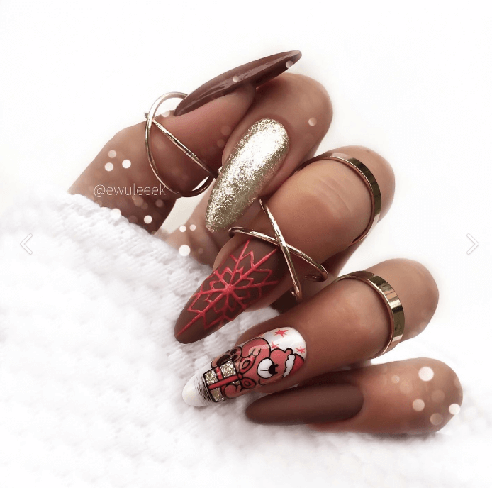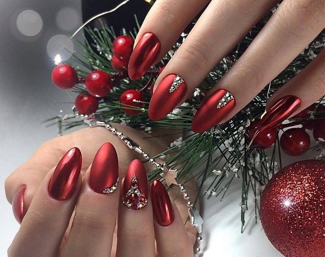 Идеи новогоднего маникюра на миндальную форму ногтей