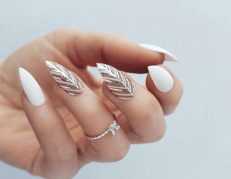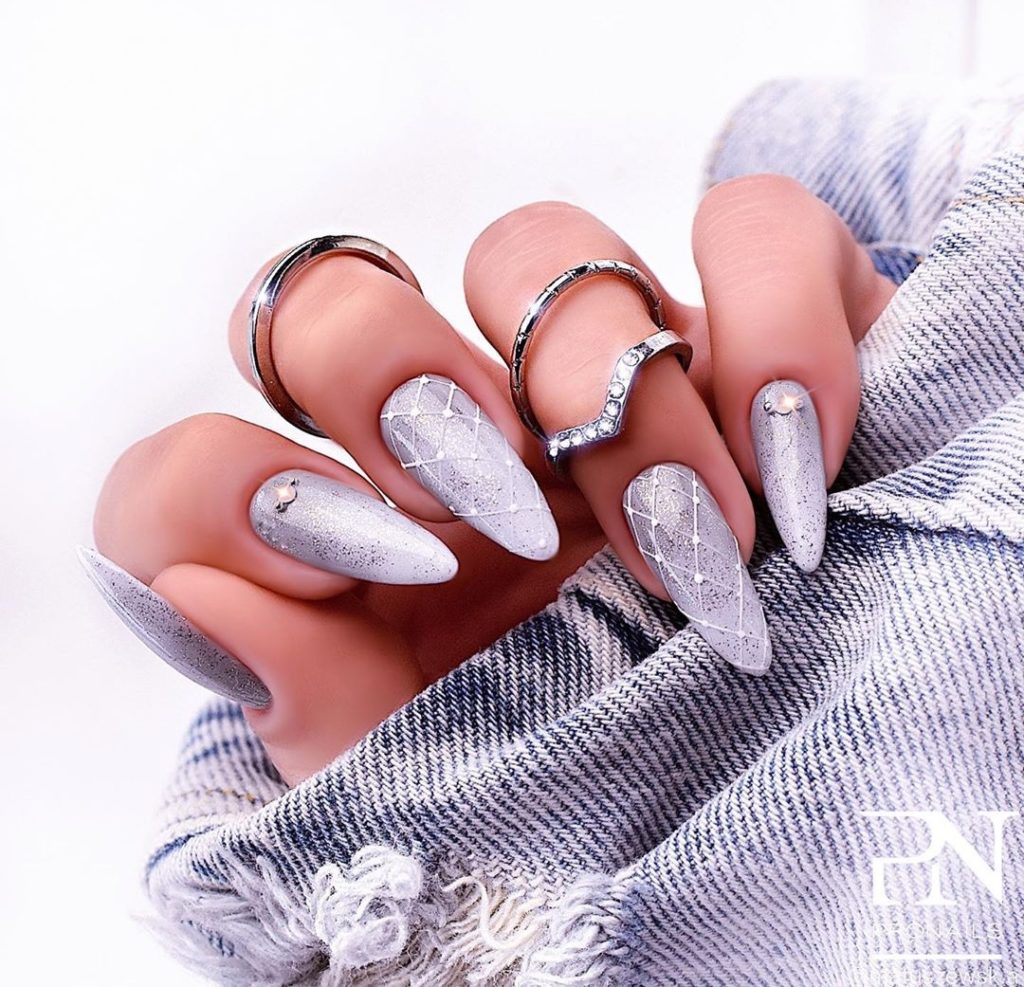 Полностью серебряный маникюр — явление довольно редкое.