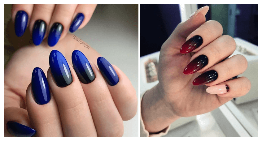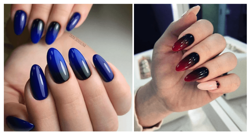 Стилисты рекомендуют сделать плавный переход на ногтях от тёмного к более светлому оттенку.