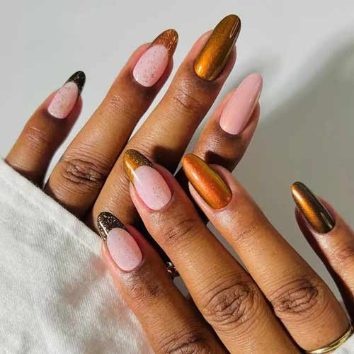- А любители зимних «уютных» дизайнов вполне могут выбрать золотисто-коричневый френч (фото 1).