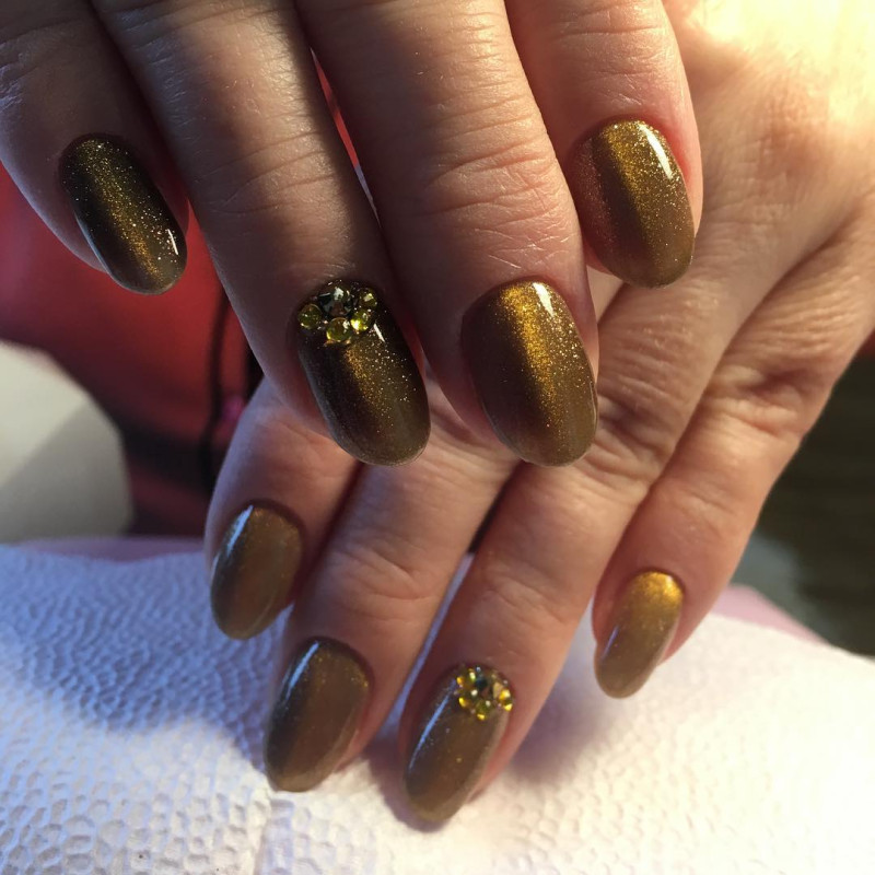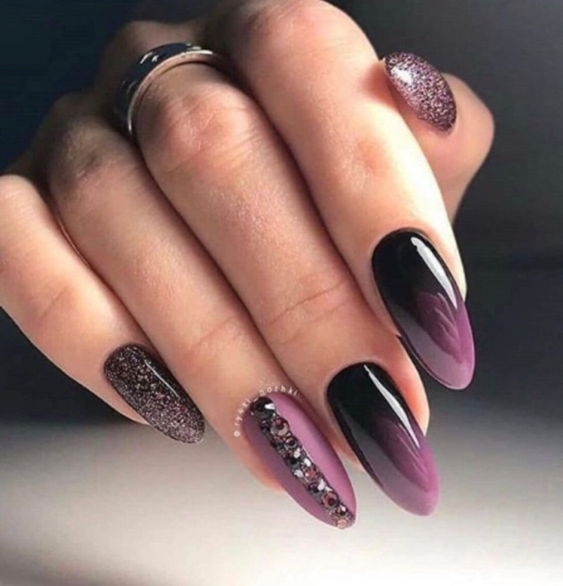 Они могут быть как глянцевые, так и матовые, как будто припылённые. Благородно будут смотреться тёмные оттенки с микро блёстками.