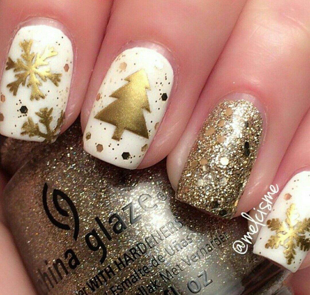 Новогодний маникюр 2020 года с золотом