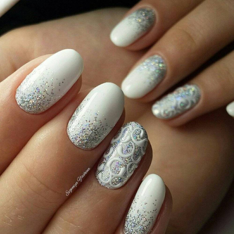 Белый — это основной цвет зимы. Снежные оттенки используются как в качестве однотонного покрытия, так и в самых распространенных дизайнах: френче, градиенте и т.д.