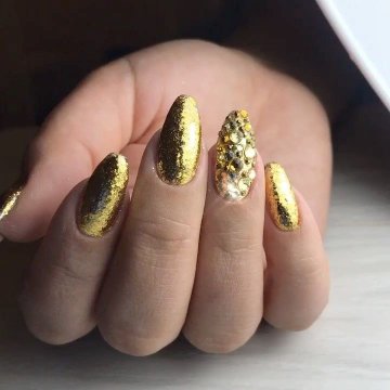 Индустрия смогла шагнуть далеко вперед, и теперь, чтобы создать золотой маникюр, могут использоваться различные дополнительные элементы декора, среди которых пленка, наклейки и фольга.