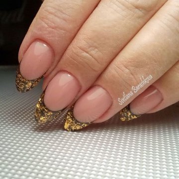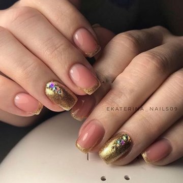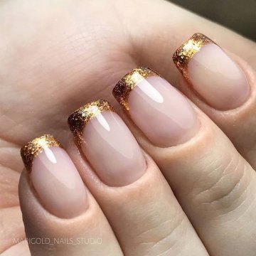Некоторые модницы считают маникюр с золотом слишком броским и экстравагантным. Однако не забывайте, что это очень модно в наступающем сезоне. Если вы более консервативная личность, то вам подойдут спокойные варианты. К примеру, можно попробовать френч с использованием золотого цвета.