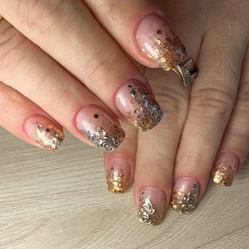 Плавный переход можно сделать самостоятельно. Для этого отлично подойдут блестки или специальная акриловая краска-лак.