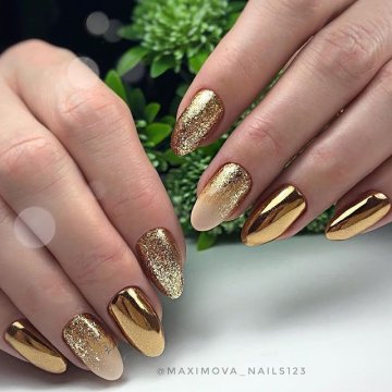 Золотистый маникюр, конечно, смотрится красиво, но еще эффектнее он будет выглядеть, если вы сделаете его в сочетании с другими цветами.