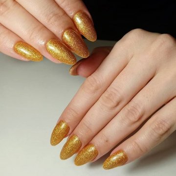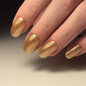 • Золотая эмаль – удивительно красиво смотрятся покрытые ровным тоном ноготки на любой форме ногтей. Девушки обычно сочетают такой нейл-арт с шеллаком марсалового, черного, шоколадного оттенков.• Золотой перламутр – более предпочтительная версия золота с блестками, которая нравится большинству современниц. Чаще его комбинируют с кремовым глянцем или с белоснежной гладью.