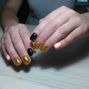 Черно-золотое оформление – это вариант не на каждый день. Гораздо более уместным он будет на вечернем мероприятии или празднике. Впрочем, многое зависит от интенсивности золотых деталей. Небольшие блестки на одном-двух ноготках прекрасно будут смотреться и в повседневной жизни.