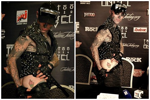 Таз. Среди тазовых костей на попе Рика, наколото… пироженко. Смотрится оно среди всей мрачной картины, как «на корове седло». Татуировка выбивается из общей картины. Сам Рик zombie boy Дженест с удовольствием спускает штанишки, демонстрируя эту последнюю картинку на филейной части. Возможно, его опарышей потянуло на сладенькое. Или же у него самого собственная задница ассоциируется со сладеньким десертом. Причина появления пироженка на попе zombie boy не понятна.