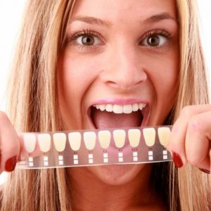 Если противопоказаний не обнаружено, стоматолог определяет оттенок зубов пациента по стандартной шкале VITA. На шкале имеется 16 искусственных зубов, ориентируясь по ним, пациент может выбрать и четко указать желанный оттенок эмали.