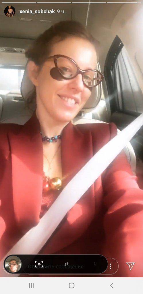 Телеведущая Ксения Собчак не стала демонстрировать лицо полностью, дополнив его патчами для глаз и очками