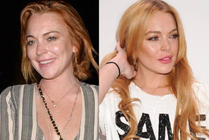- Линдси Лохан. Мы привыкли видеть эту американскую скандалистку с тяжелым макияжем, который добавляет ей возраста. Это часть образа девушки. Однако без косметики актриса выглядит очень мило и нежно.
