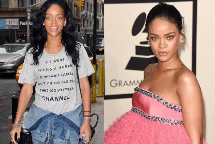 Рианна. Одна их первых селебрити, которая стала появляться на публике без макияжа. Хоть Рианна и обладает ровным тоном кожи и отсутствием морщин, все же ее внешность значительно отличается от той, которую мы чаще всего видим на таблоидах.