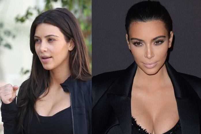 Ким Кардашьян. “Золотой ребенок” и просто светская львица голливудских тусовок без макияжа выглядит свежо и привлекательно. Однако, несмотря на свою восточную внешность и красивые очертания Ким часто пользуется очень жестким контурингом, причем наносит его сама.
