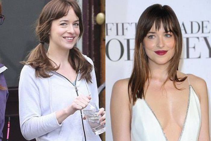 Дакота Джонсон. Серая мышка из трилогии “50 оттенков серого” в жизни выглядит точно также, как и ее экранная героиня Анастейша Стилл. Легкая небрежность в прическе и полное отсутствие грима совершенно не пугает Дакоту, так как идеальная кожа и симпатичная внешность являются ее “главными козырями”, которые красивый макияж лишь подчеркивает.